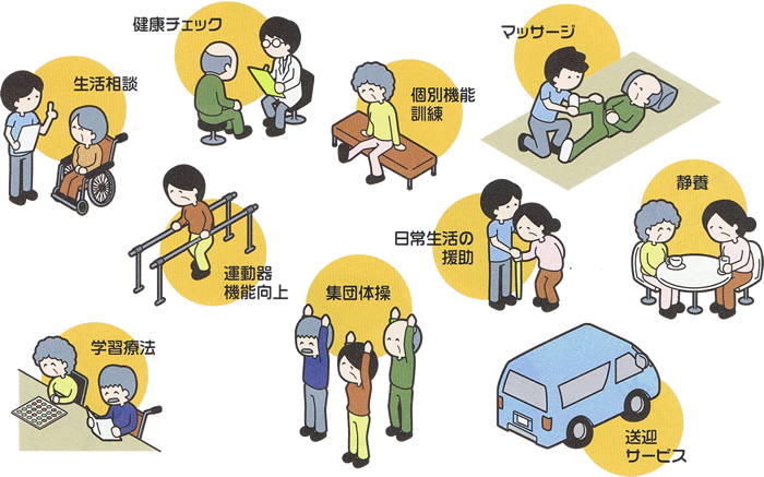 | 設備 | 機能訓練室・静養室・相談室・洗面所・障害者用トイレ・ コミュニティールーム・送迎車 |